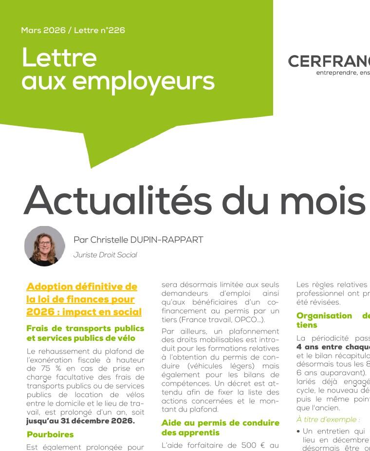 Lire l'article "Lettre aux employeurs - Mars 2026"